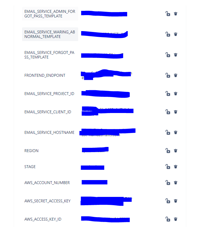 SONAR_TOKEN, SONAR_HOST_URL, SLS_DEBUG, AWS_ACCOUNT_NUMBER, AWS_SECRET_ACCESS_KEY, REGION, AWS_ACCESS_KEY_ID