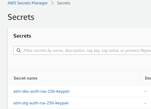 Click on ‘atm-stg-auth-rsa-256-keypair’ to view the PrivateKey and PublicKey information to access the Production site.