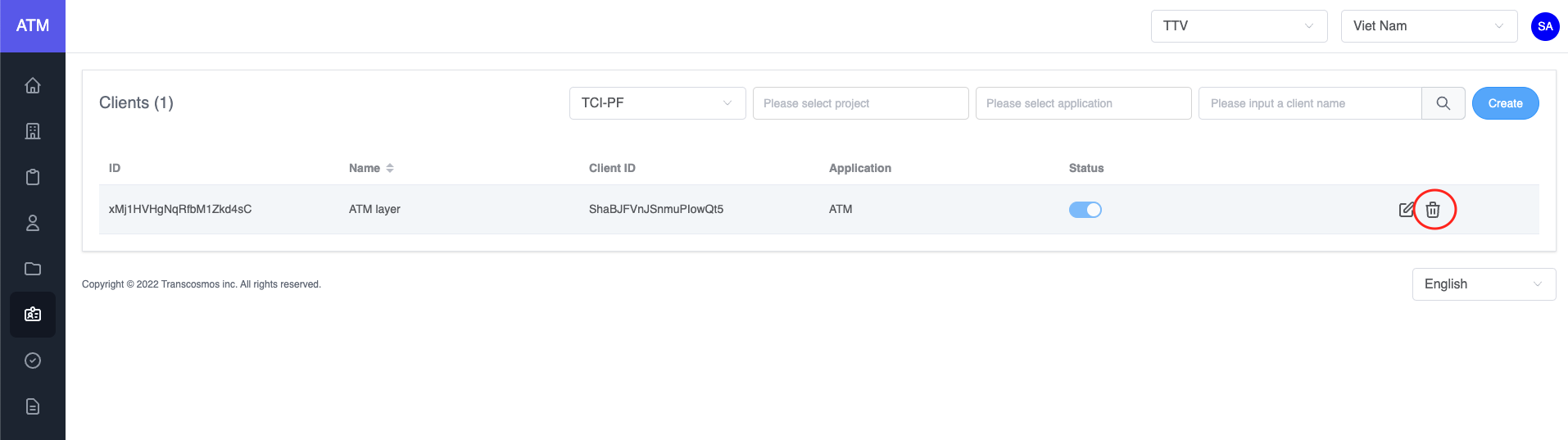 - On the clients grid, click on the delete icon of record where you want to delete the client