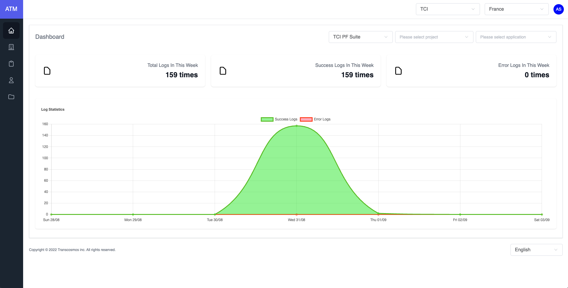The dashboard page is intended to provide detailed visibility into user login data, including Total Logs, Success Logs and Error Logs weekly. Based on this, Users will be able to view and manage their application request traffic.