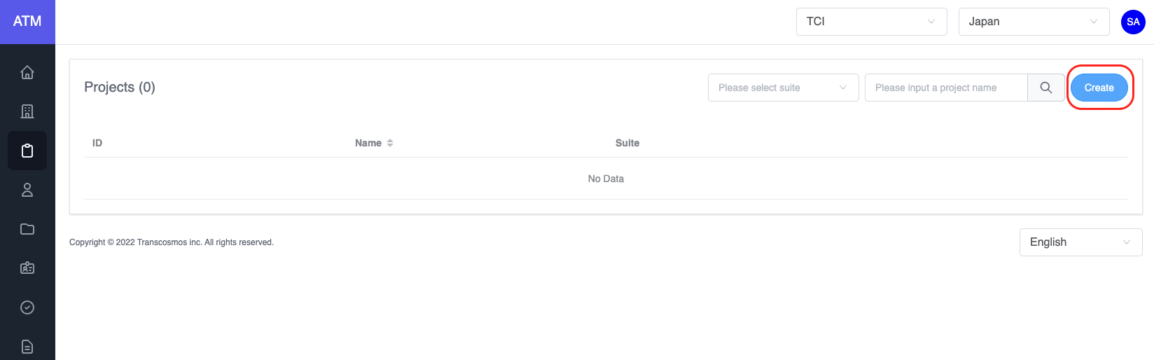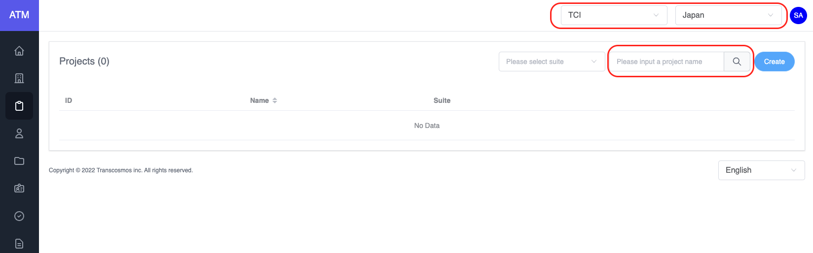 - Enter and select data: project name and suite