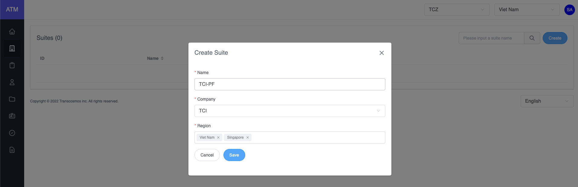 - The Edit Suite popup will be displayed, you can update the suite's name or update regions.