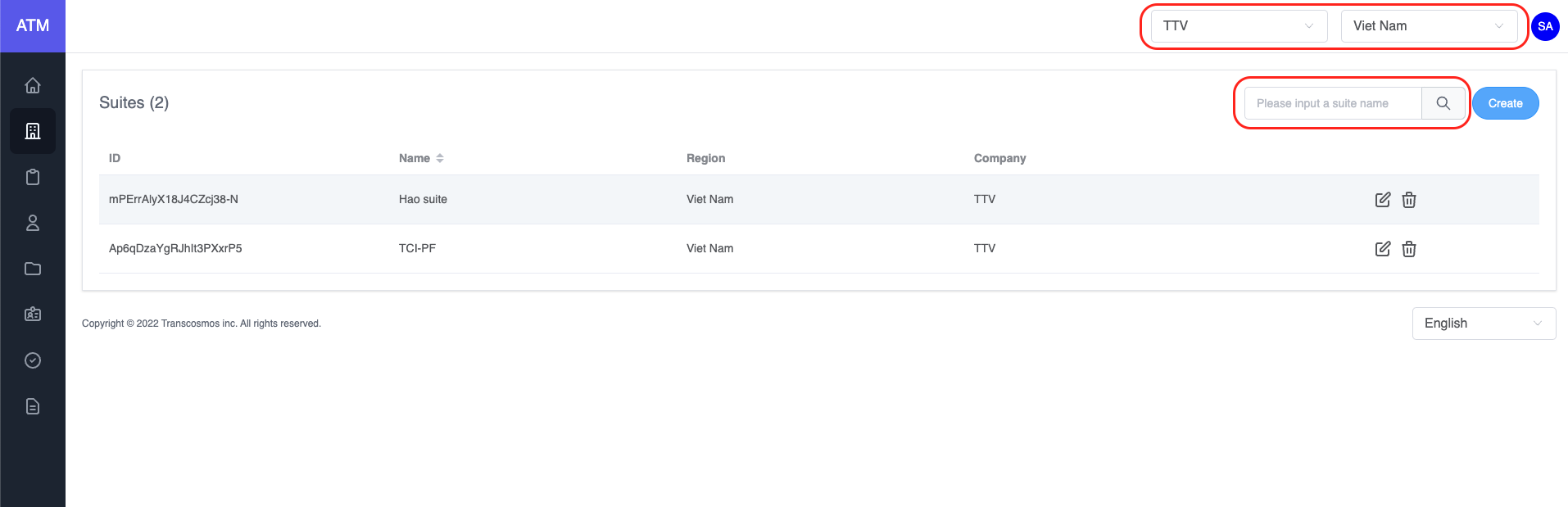 - Warning: If the suite had project, user can not delete it. Please delete the project of this suite first and then delete the suite.